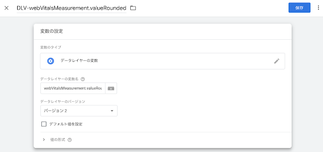 例えば、DLV - webVitalsMeasurement.name であれば以下のように設定します。